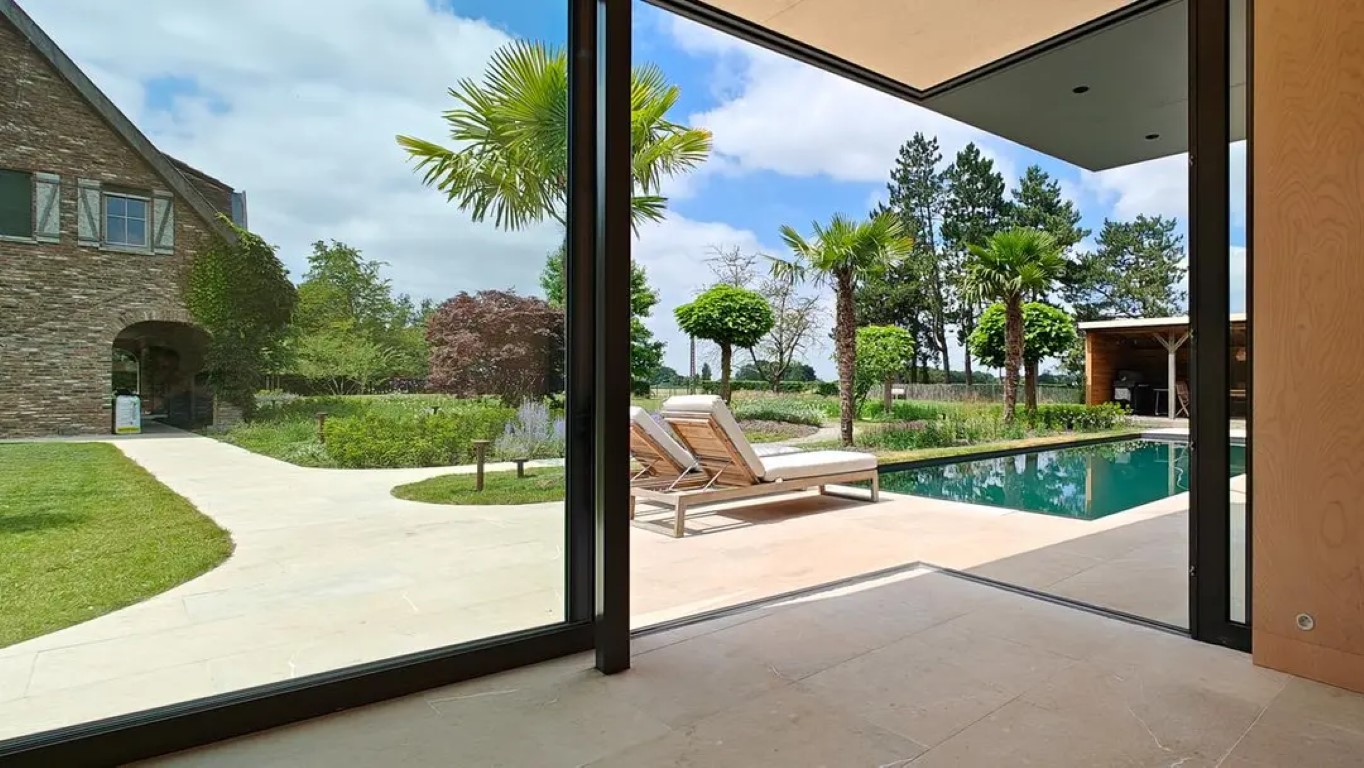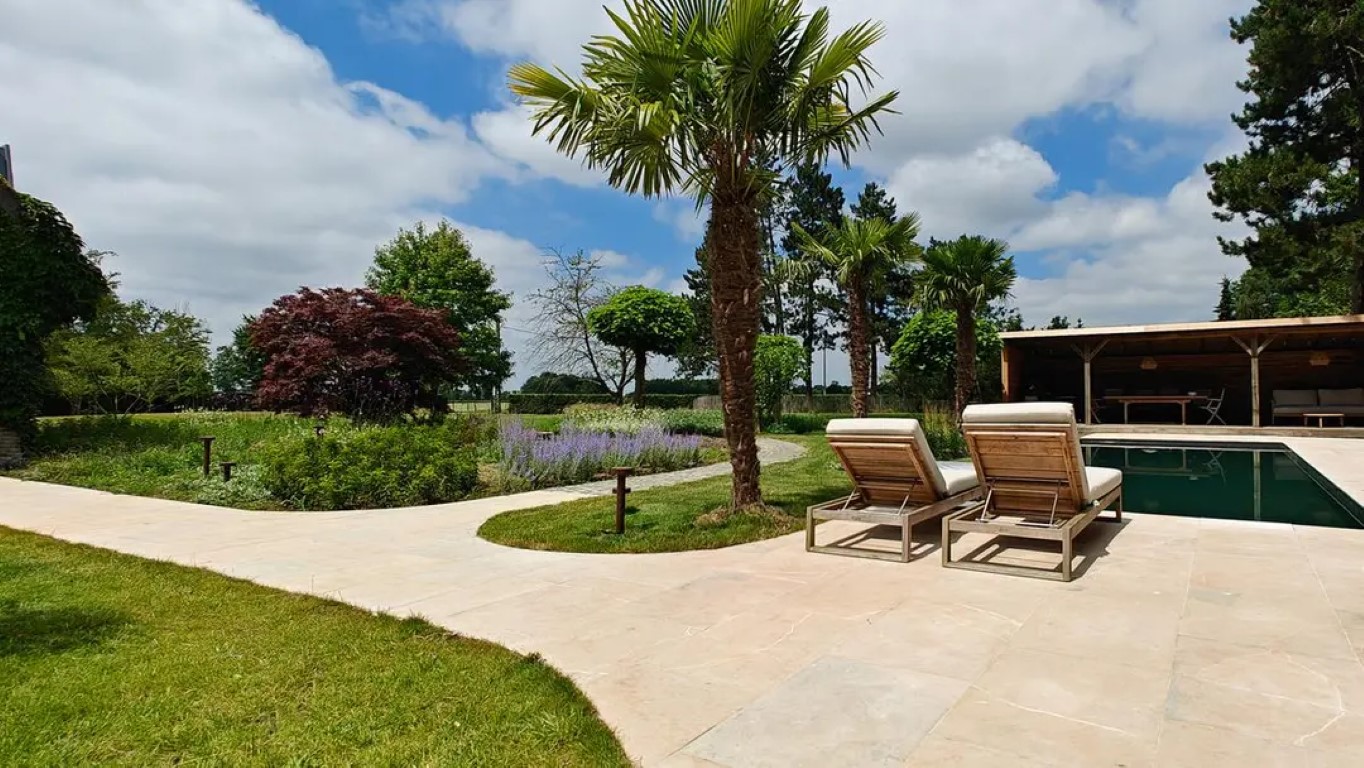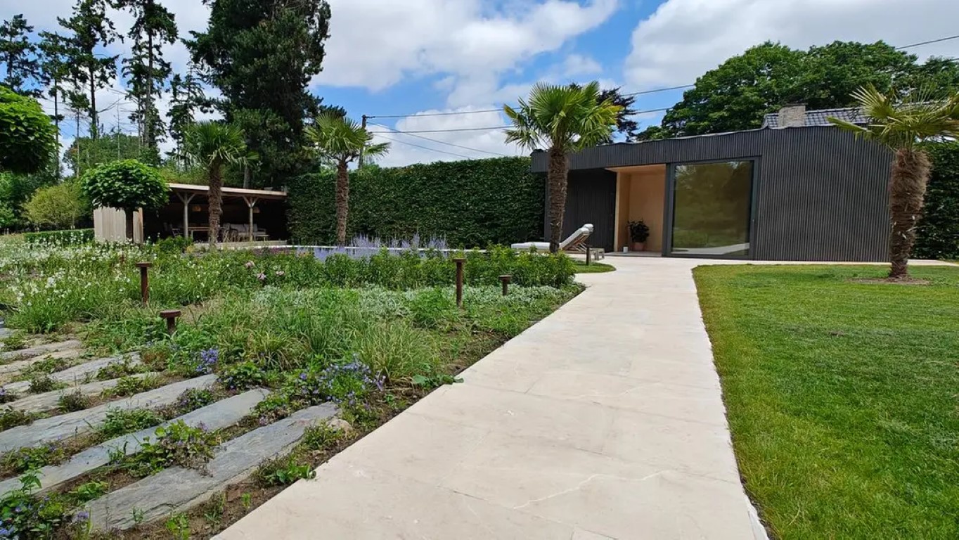 randstenen en terrastegel door incl. eventueel foto/tekening van zwembad.