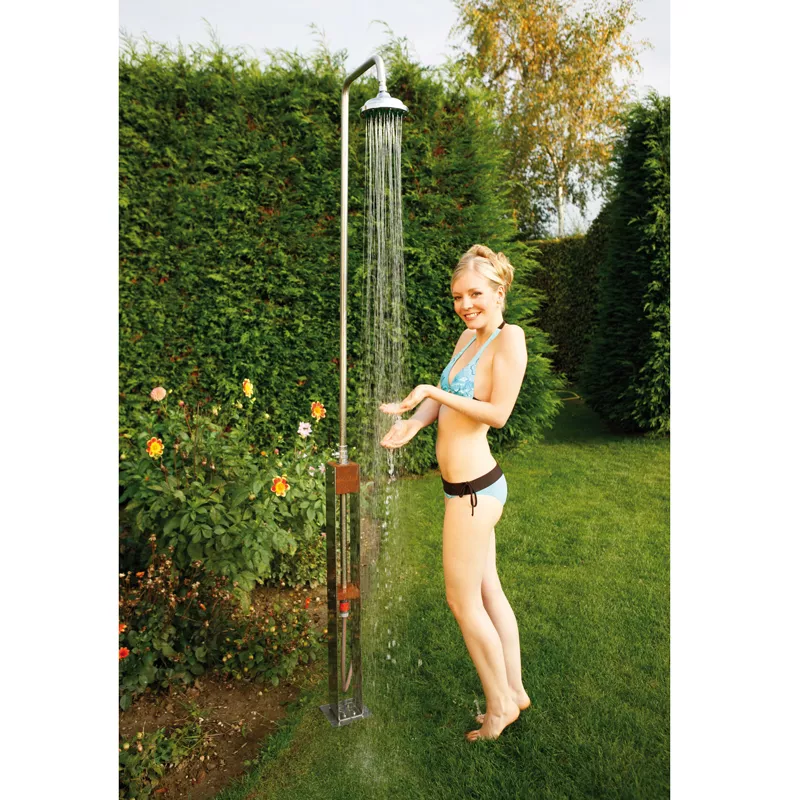 Een verfrissende douche op een warme zomermiddag is zo’n klein genoegen. Met de Altena tuindouche kunt u uzelf en uw dierbaren in een handomdraai van dit plezier laten genieten: steek de meegeleverde grondpen in het gazon of bloembed, sluit een standaard tuinslang aan – en het plezier kan beginnen. Dankzij de snelle en eenvoudige installatie kan de douche overal worden geplaatst waar een verfrissende douche nodig is: op het terras, in de tuin of direct bij uw zwembad.