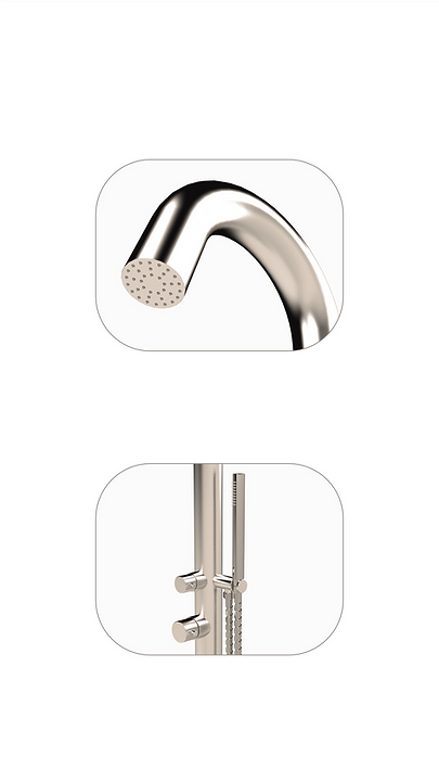 Warm- en koudwaterdouche in een stijlvol design, volledig gemaakt van roestvrij staal.