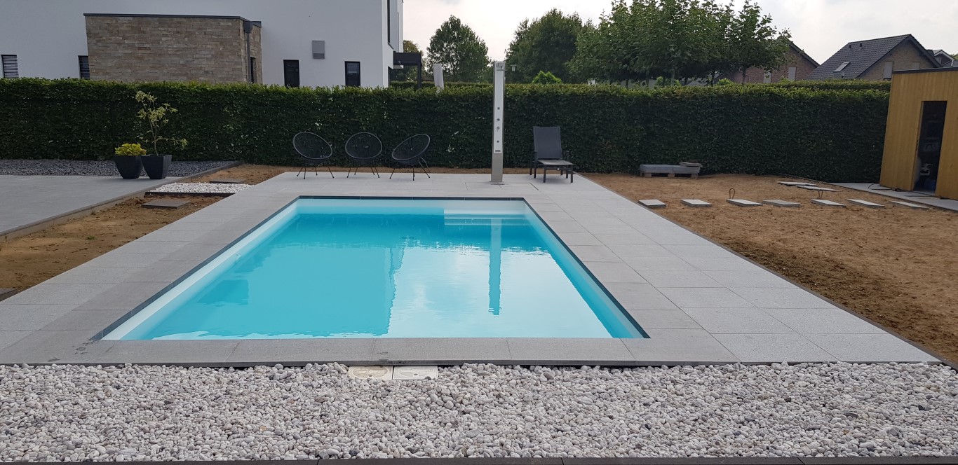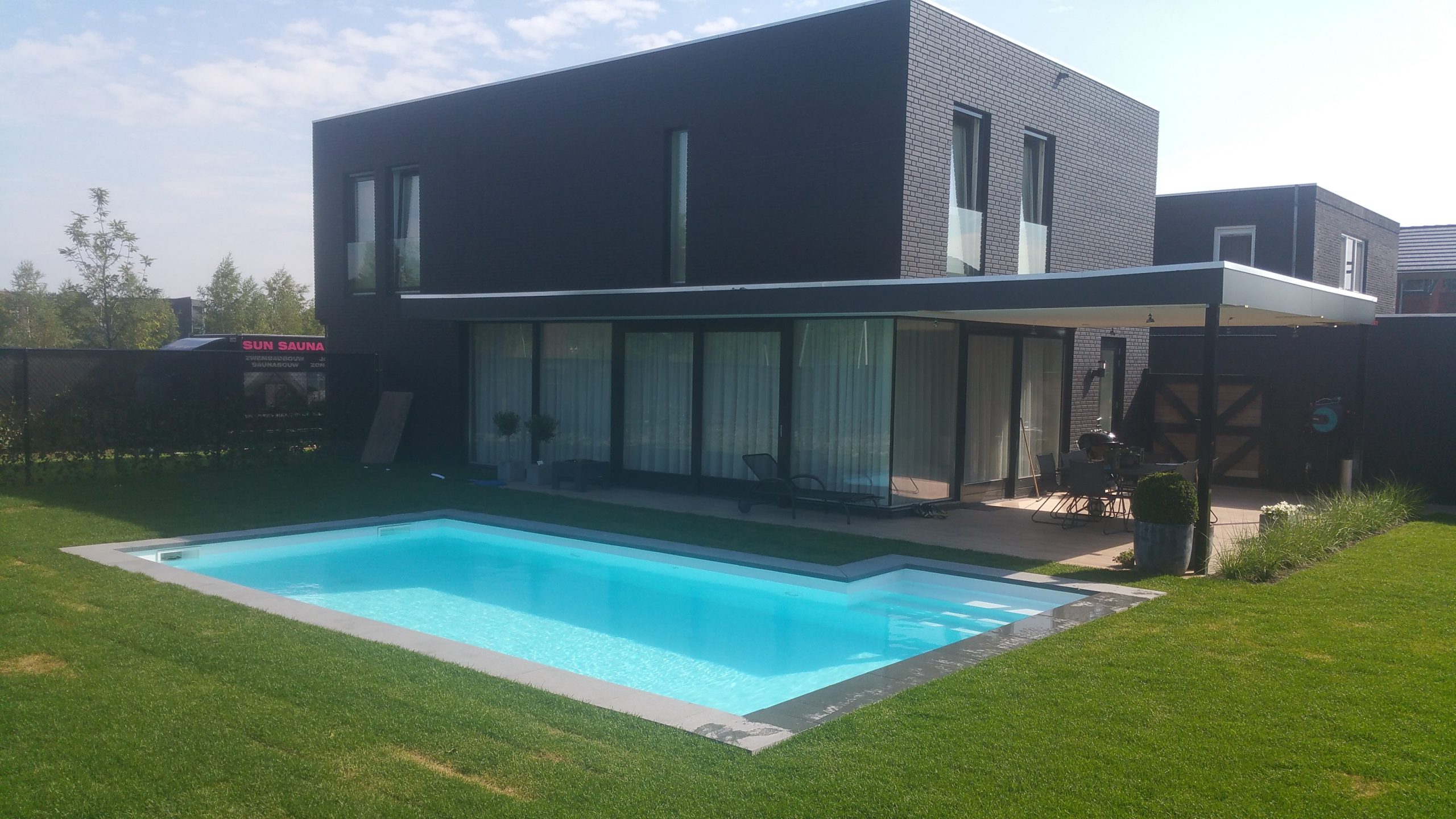 randstenen en terrastegel door incl. eventueel foto/tekening van zwembad.