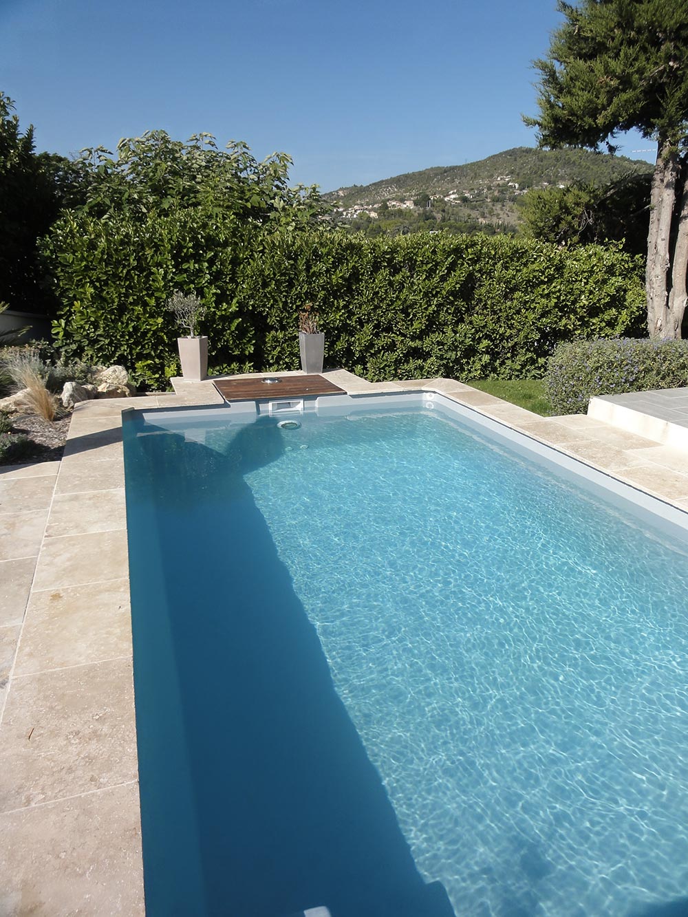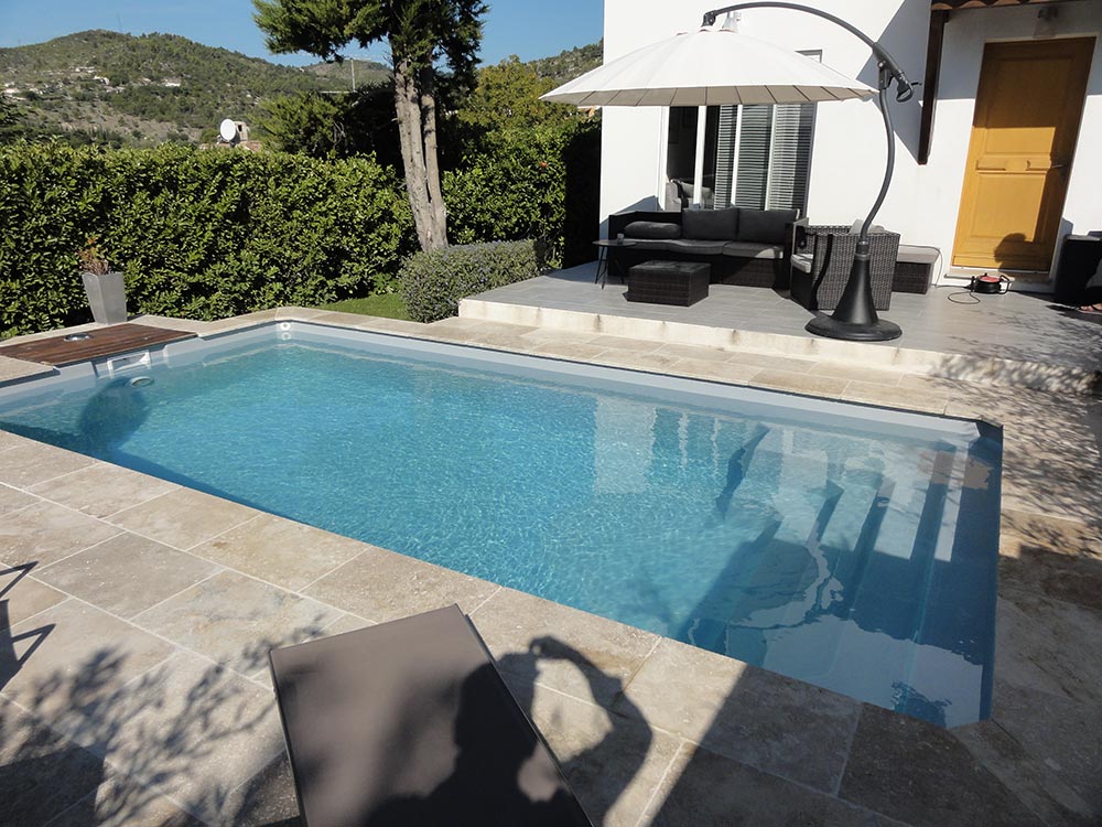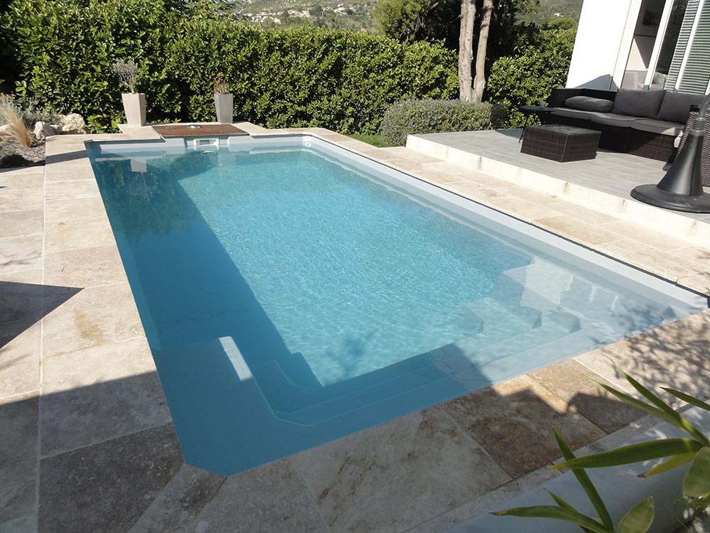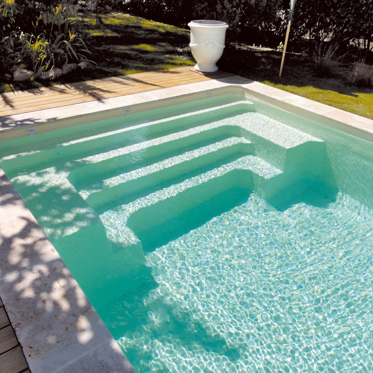 Polyester zwembad met schuine bodem Dankzij de schuine bodem is dit zwembad erg populair bij gezinnen. Kinderen en volwassenen kunnen er heerlijk ontspannen en zwemmen. Ons Pomaregue-model is een van de meest aanpasbare: het heeft een waterinhoud van 70 kubieke meter en een diepte van 1,20 m tot meer dan 2 m. Het is het ideale zwembad voor iedereen! Polyester zwembaden op maat Heeft u een specifiek idee in gedachten? Dat is perfect, want bij Generation Piscine bieden we een breed scala aan polyester zwembaden op maat. Ze worden ontworpen om volledig aan al uw wensen te voldoen, of het nu gaat om esthetiek, design of functionaliteit.