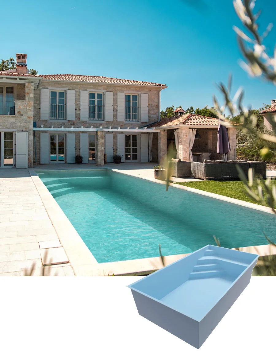 Polyester zwembaden van Generation Piscine Generation Piscine staat synoniem voor Franse expertise in de productie van polyester zwembaden. Onze fabrieken zijn gevestigd in Toulouse, waardoor u verzekerd bent van de hoogste kwaliteit en de nieuwste technologie voor uw zwembad. Onze innovatie? Een alternatief voor traditionele zwembaden dankzij polyester. Al meer dan 20 jaar delen wij onze expertise en garanderen wij een onberispelijke kwaliteit van onze polyester zwembaden. Wij staan tot uw dienst om al uw projecten te realiseren en polyester zwembaden op maat te creëren die aan al uw wensen voldoen. Van ontwerp tot levering en grondwerk voor de installatie, Generation Piscine zorgt voor de bouw van het zwembad van uw dromen.