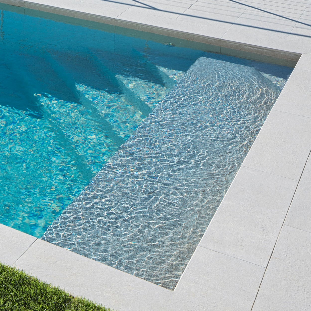 Gelcoat oppervlakteafwerking: ongeëvenaarde glans en duurzaamheid Onze Carbone Pure® gelcoat afwerking is een hoogwaardige oplossing, speciaal samengesteld met een hoog gehalte aan neopentylglycol. Het is ontworpen om een blijvende glans en uitzonderlijke duurzaamheid te bieden, zelfs onder extreme omstandigheden. Superieure optische transparantie: brengt de kleuren van uw zwembad prachtig tot hun recht en creëert verbluffende diepte-effecten. Chemische bestendigheid: ideaal voor zwembadomgevingen, bestand tegen chloor, zout en pH-schommelingen. Verbeterde UV-bescherming: voorkomt vergeling en dofheid na verloop van tijd, waardoor het oppervlak jaar na jaar zijn glans behoudt. GÉNÉRATION PISCINE IS DE ENIGE FRANSE FABRIKANT DIE DEZE GELCOAT oppervlakteafwerking AANBIEDT.