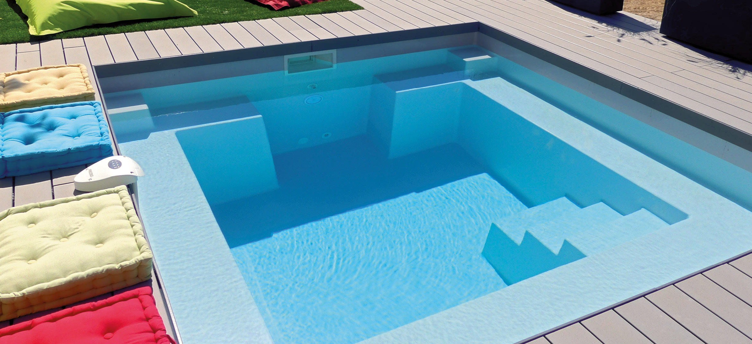 Om ervoor te zorgen dat u optimaal kunt genieten van zwemmen en ontspannen in het water, heeft Generation Piscine 48 polyester zwembadmodellen ontwikkeld. Deze modellen zijn onderverdeeld in vier verschillende series om aan alle behoeften en wensen te voldoen. Polyester zwembaden met vlakke bodem Het zwembad met vlakke bodem is ideaal voor wie op zoek is naar comfort, een mooie uitstraling en veiligheid tijdens het zwemmen: deze serie combineert alle drie. Het is een zwembad om in te ontspannen en af te koelen, geschikt voor zowel kinderen als volwassenen. Bij Generation Piscine zijn onze zwembaden met vlakke bodem verkrijgbaar in verschillende maten, waaronder ons nieuwste model: de Capitole 4. De afmetingen zijn zo ontworpen dat het in elke tuin past, van klein tot groot. Met een zitgedeelte, armleuningen en voetensteun biedt dit zwembad maximaal comfort voor elke zwemmer.