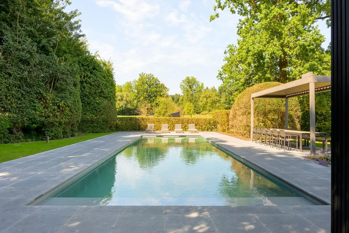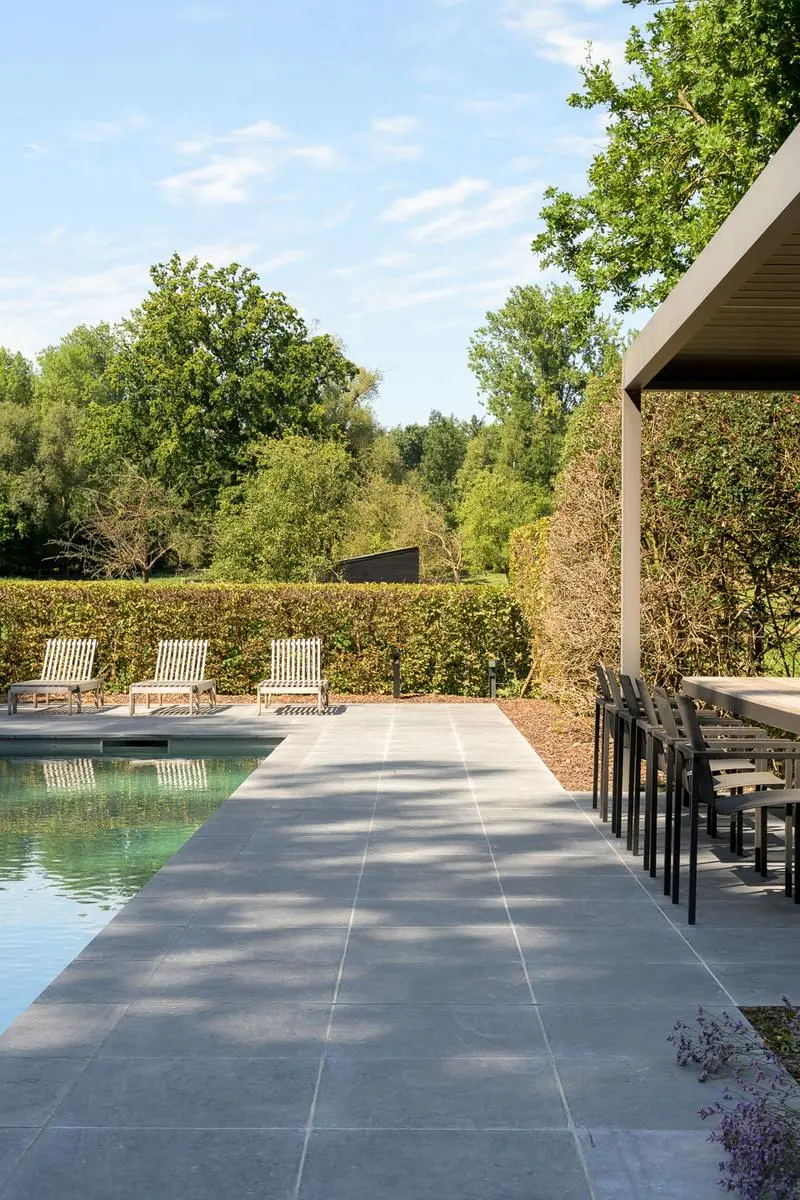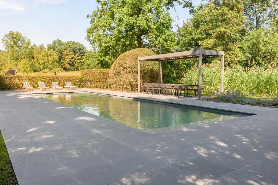 randstenen en terrastegel door incl. eventueel foto/tekening van zwembad.