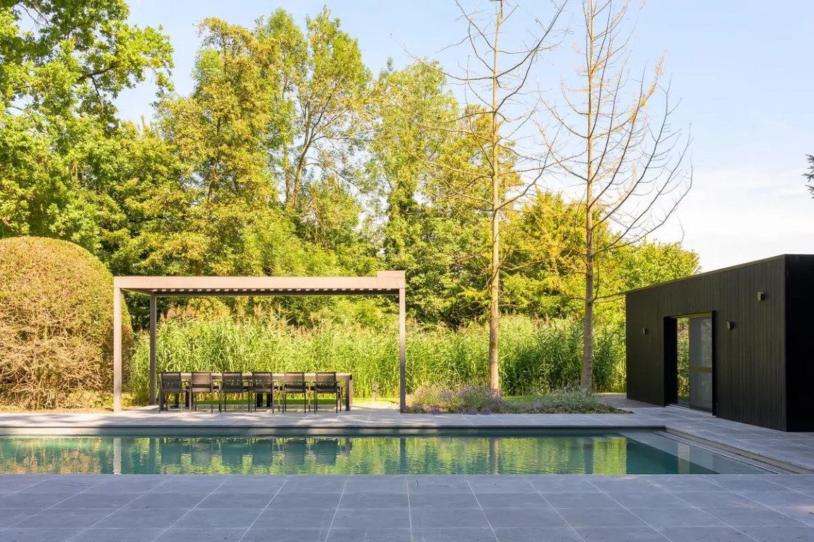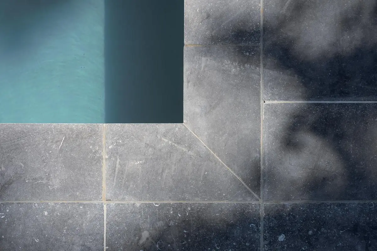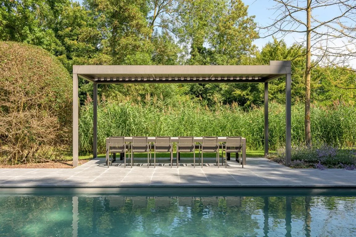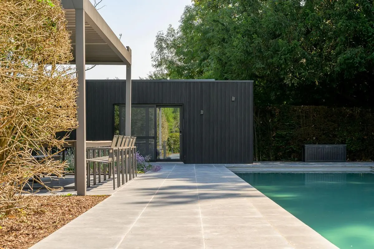 randstenen en terrastegel door incl. eventueel foto/tekening van zwembad.
